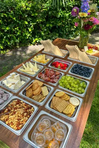 In addition to our Bottomless Mobile Charcuterie Cart, we offer: Charcuterie Cups — single-serve, ready-to-grab assortments perfect for showers, open houses, corporate meetings, and events where convenience matters. Charcuterie Boards — beautifully styled boards in multiple sizes, ideal for intimate gatherings, holidays, or gifting. Grazing Tables — larger, elevated displays for events of all sizes, from small parties to large celebrations